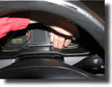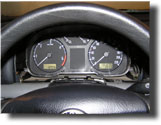 7) Ostranit ochranné folie lepících proužků na nerezových kroužcích tachometru a lehkýcm tlakem vsadit kroužky na panel přístrojů. Na pomoc si vemte mokrý hadřík, kterým budete moci při zpětné montáži otřít plexisklo od otisků prstů a prachu. Při zpětné montáži zavést nejprve všech 8 západek a teprve potom zaskočit ochranné plexisklo. Celý panel přístrojů zatlačit nejprve dolů a potom nahoru do uložení.