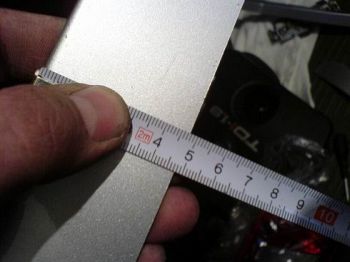 Udělal jsem podle ocelového měřidla (je ohebné) tenkou lihovou fixou hranici řezu ve vzdálenosti 49mm. (měřeno od horní hrany lišty)