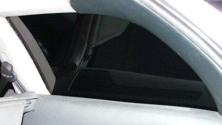 Sklo drzi OK zvnutra všetko plasty schovaju. Na fotke to je vidět, lebo to blesk osvietil a leskne sa to, ale v reale to nevidiet. Okno čierně, lep čierný a je to až pod plastom.