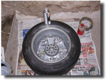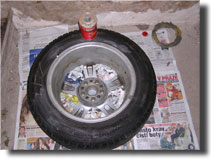 Potom kola nastříkáme z vnitřní strany. (řádně si vše zakryjeme novinami, aby nám barva nestékala na vnější stranu disku)