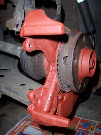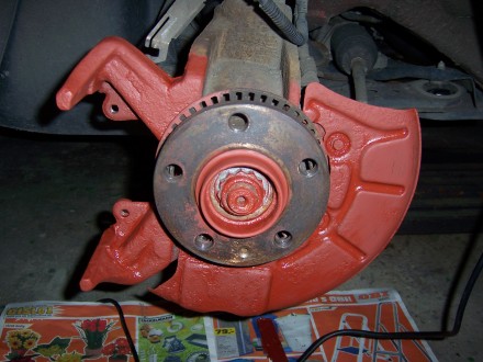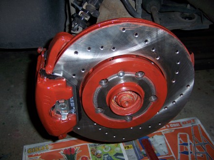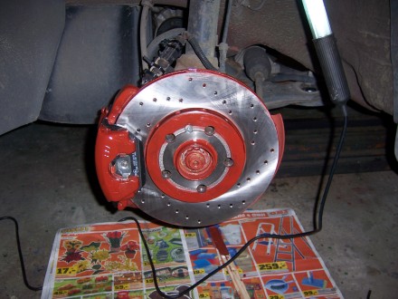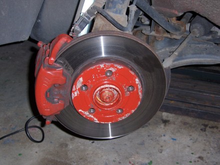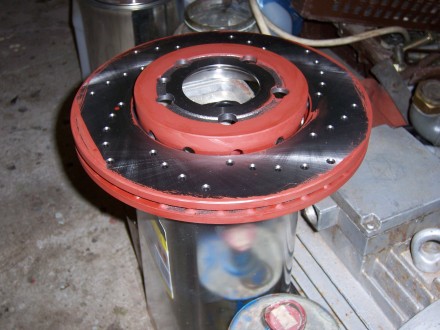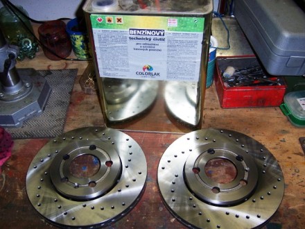 Kotouče jsem pořádně odmastil technickým benzínem a taky jsem si je zrovna natřel - dvakrát základní barva, pak dvakrát povrchová červená ( vobyč barva )