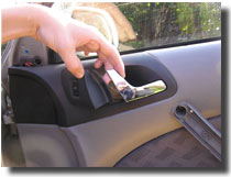 Vycvakneme ovládání zrcátek a odpojíme konektor