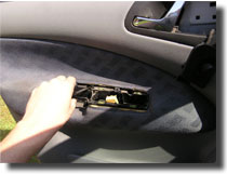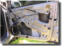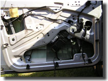 e) Vycvakneme ovládání stahování oken a odpojíme konektor