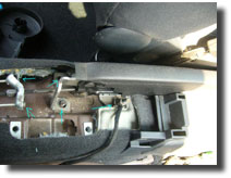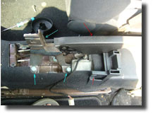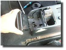 Vyndáme zadní popelník, pod ním jsou dva torxy (obr.4), pak tunel vyndáme směrem nahoru a dopředu přes ruční brzdu )