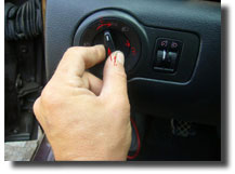 Vyndáme spínač světel zamáčknutím v nulové poloze a otočením doprava a poté vytažením směrem ven. (obr.13)