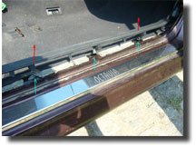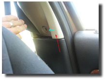 Pak jeden šroubek na B sloupku (obr23) , mírně ho tlačíme směrem nahoru spolu s spodním dílem který u spodu vyháknem z prahového plastu