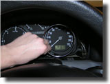 7) Ostranit ochranné folie lepících proužků na nerezových kroužcích tachometru a lehkýcm tlakem vsadit kroužky na panel přístrojů. Na pomoc si vemte mokrý hadřík, kterým budete moci při zpětné montáži otřít plexisklo od otisků prstů a prachu. Při zpětné montáži zavést nejprve všech 8 západek a teprve potom zaskočit ochranné plexisklo. Celý panel přístrojů zatlačit nejprve dolů a potom nahoru do uložení.