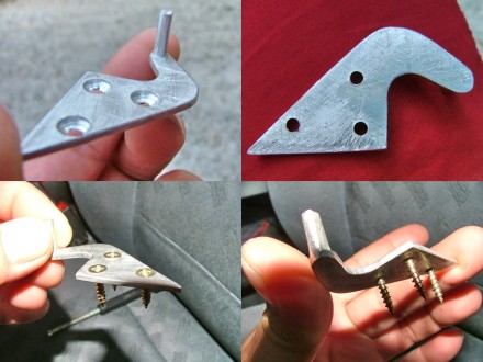 Do pantu som navrtal 3 diery pre skrutky, ale musia tam ist so "zapustenou"hlavou aby nezapierali o spodnu cast opierky. Este pozor pri vyrobe druheho pantu ! Ten sa moze robit podla prveho, ale nezabudnut ho zrkadlovo otocit. Musi byt pant pravy a lavy, aby sa vam nestalo, ze urobite dva rovnake lave alebo prave