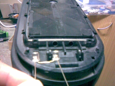 3. nad západkou navrtat dvě dírky pro diody