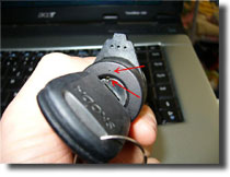 Odpojte baterii a spínačku s klíčem otočte do polohy těsně před startem, aby se kryly dírky na plastu a na plechu.