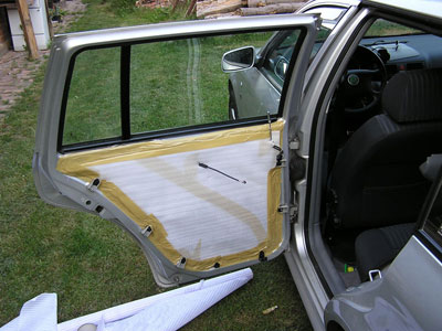 nalepíme zpět nějaký igelit, aby nám do auta nepršelo...