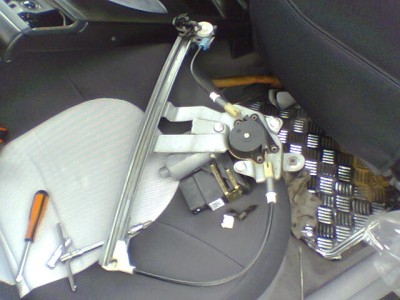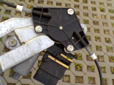 ze staré stahovačky ještě na skle vespod zůstala objímka uchycení okna, to jde stáhnout dolů rukou montážními otvory a objímka se povolí též dvěma montážními otvory, okno se opět vrátí zpět nahoru a může se namontovat zpět nová (opravená) stahovačka zpět na své místo, dotáhneme šrouby připojíme svorkovnici a připojíme na chvíli tlačítko ovládání okna, sjedeme si oknem k montážním otvorům a dotáhneme objímku uchycení okna a mechanismus odzkoušíme.....