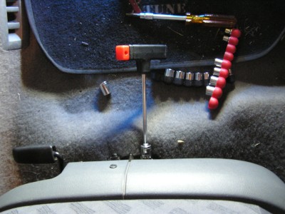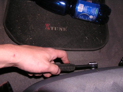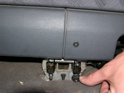 6) Povolíme dva šrouby, které drží sedačku uprostřed