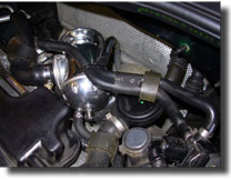 3) Na tlakovou hadici od turba nasuňte povolenou eskapásku tak, aby bylo možné ji po montáži BOV utáhnout.