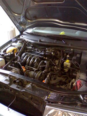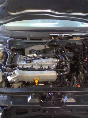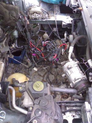 tak a tady je už motor v autě, ještě hadici na chladič vzduchu zapojit baterku a jede se