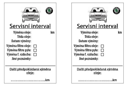 Po výměně olejů a filtrů stačí štítek vytisknout na tužší karton - např. papír 120 g/m2