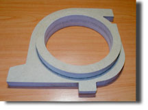 omalujte podle prolisu dveří nebo podle výkresu. Horní protější zkosení je tam z důvodu, aby podložka nezavazela prolisu kapsy tapeťáku. Dále vykružtel dva prstýnky o prům. 177 a