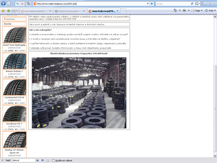 Že si se správným skladováním pneumatik hlavu nedělají jsme zjistili na stránkách možná největšího prodejce pneumatik u nás www.nejlevnejsipneu.cz, kteří mají na svých stránkách několik fotografií skladu zde: http://www.nejlevnejsipneu.cz/cz/info.php ,po zmáčknutí aktualizovat vám stránka ukáže ještě další foto.
