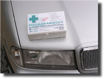Každé motorové vozidlo, kromě mopedu a motokola, jednonápravového traktoru s přívěsem a motorového vozíku, musí být vybaveno příslušným druhem lékárničky pro poskytnutí první pomoci. Pro požární automobily je výbava příslušným druhem lékárničky stanovena zvláštním právním předpisem. Obsah lékárničky se ukládá do samostatného pouzdra s charakteristickým označením. Lékárnička se ve vozidle ukládá v takovém prostoru, aby na ni nemohlo dopadat přímé sluneční světlo (záření). Úložný prostor pro lékárničku musí být suchý a čistý a musí být snadno přístupný. U vozidel pro hromadnou přepravu cestujících se lékárnička umísťuje na označeném a přístupném místě v prostoru vozidla určeném pro cestující. Provozovatel vozidla musí lékárničku udržovat v řádném stavu a jednotlivé druhy zdravotnických potřeb obměňovat. Doba použitelnosti jednotlivých druhů zdravotnických potřeb je na nich vyznačena. Druhy lékárniček, jejich obsah a výbava a použití podle druhů vozidel jsou uvedeny v příloze č. 14. Použití jednotlivých druhů autolékárniček